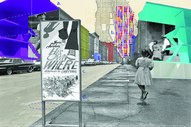 This fall I began to critically engage June Jordan’s ‘architextural’ musings using the tools of the architect. My research project began by analyzing the architectural and urban design principles implicit in Jordan’s 1971 novella His Own Where.[7]